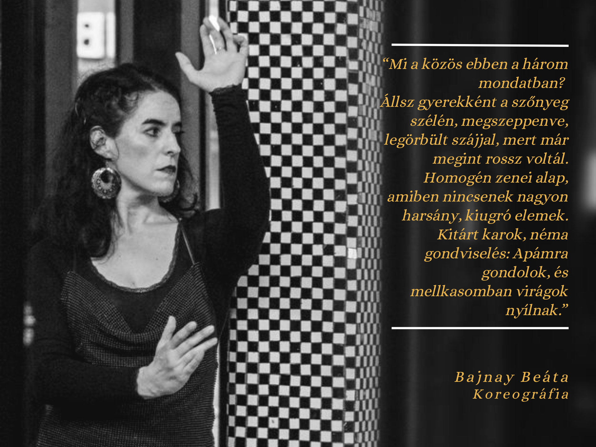 Új előadásunkban olyan témát dolgozunk fel, ami mindannyiunkat érint. Közös vállalásunk teret adni a mindekit érintő veszteség és gyász témájának a szöveg, a mozgás és a zene egyenrangú használatával. Ehhez Dragomán György írásait hívjuk segítségül. Célunk egy olyan egy kamara előadás létrehozása, ami szűkre szabott térben is működőképes, könnyen...